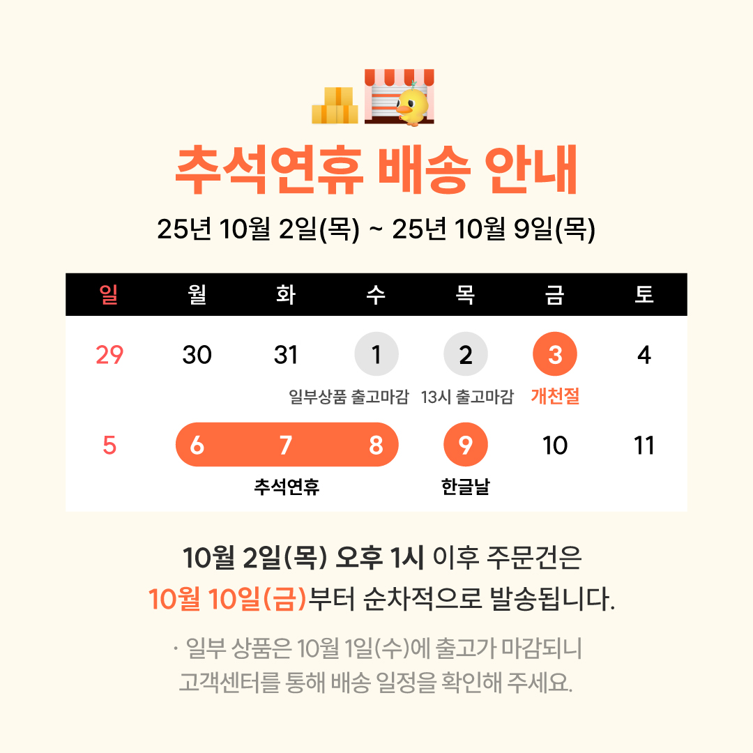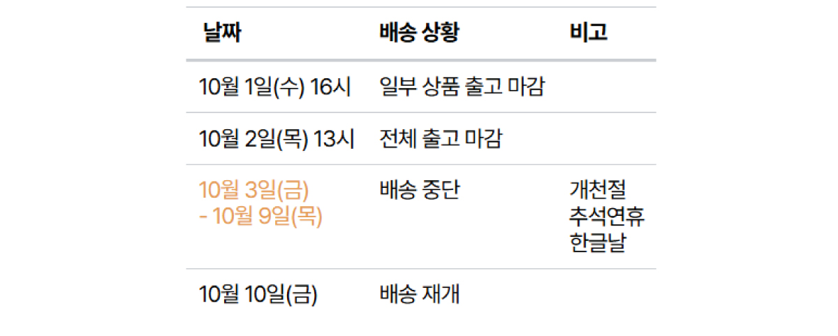 *일부 상품의 경우, 공급처 휴가로 인해 10월 1일(수) 16시에 조기마감되니 주문 전/후